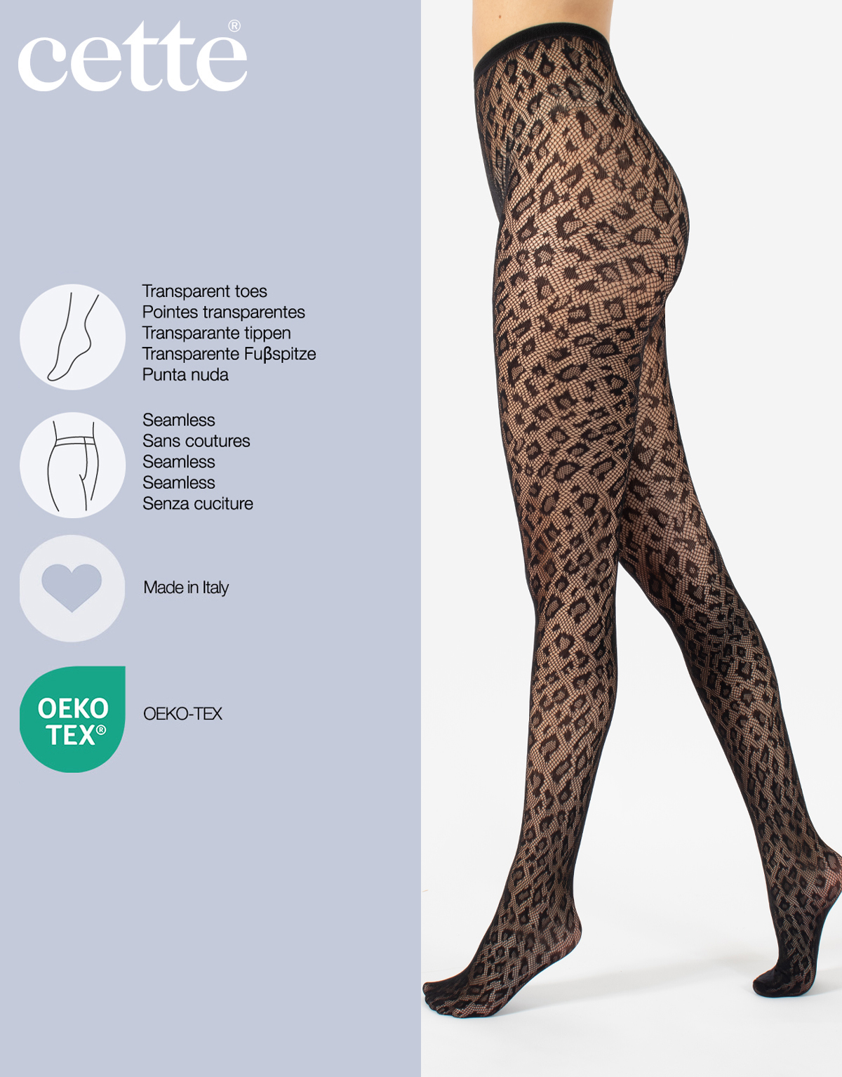 A fashionable evergreen meets a universally acknowledged pattern: we are talking about fishnet and animal print. Everyone must have at least a pair of fishnet tights in their drawer, better if they are particular and unusual. These fishnet tights have a animal pattern all over, inspired by the speckled fur of leopards. Animal print is an evergreen pattern which occasionally comes back in fashion in worldwide runways, but mixed with fishnets, will surely create an unique and extraordinary style. These fishnet tights are made of high-quality yarns in Italy and not only they are stylish and fashionable, but also really comfortable thanks to the stretchy band and the absence of seams. These seamless fishnet pantyhose do not leave any marks on the skin and can be worn all day long with much ease. Leopard fishnet tights for your daily or special looks: they can really give them a boost!