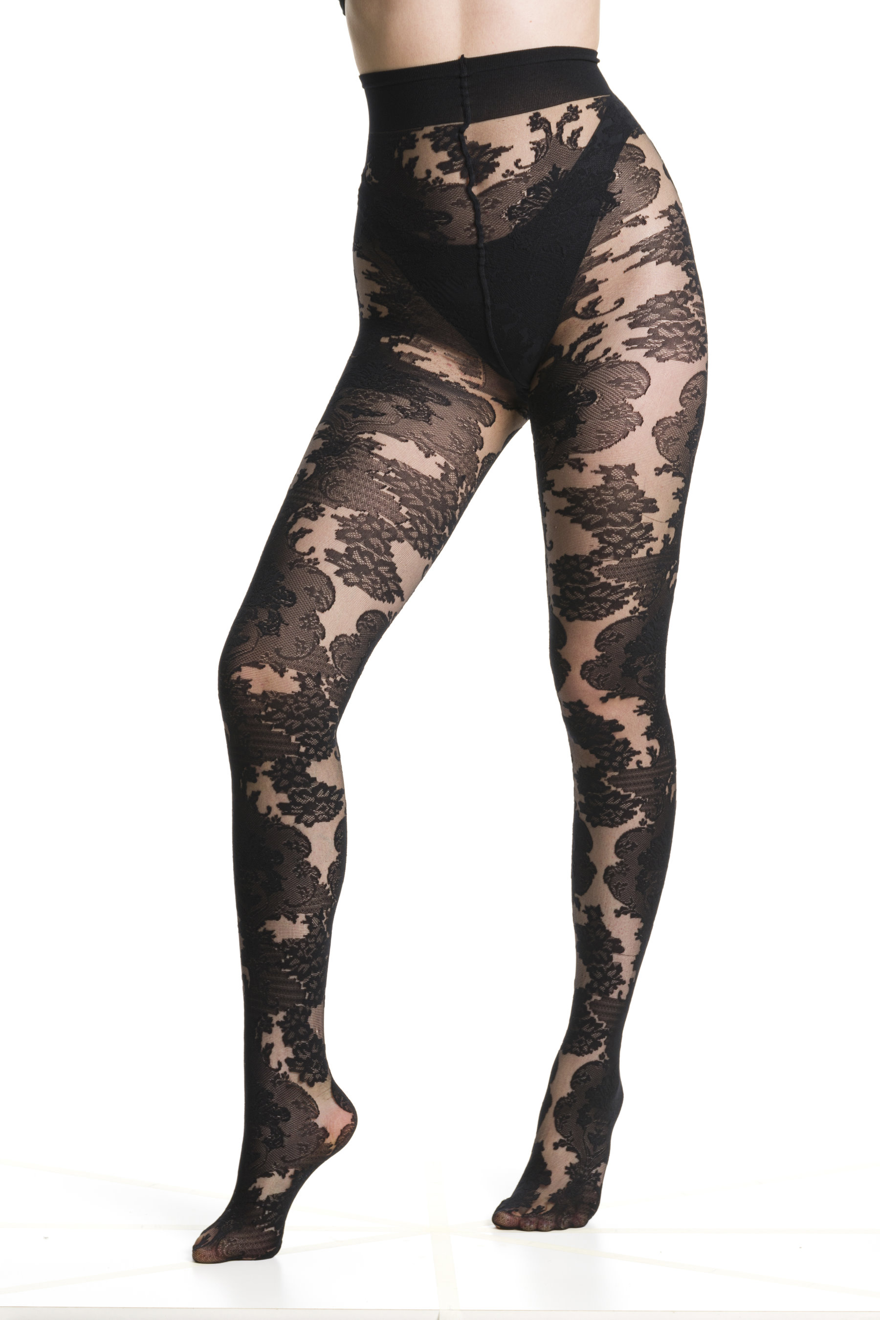 40 denier semi-opaque tights with beautiful damask pattern in lace look.